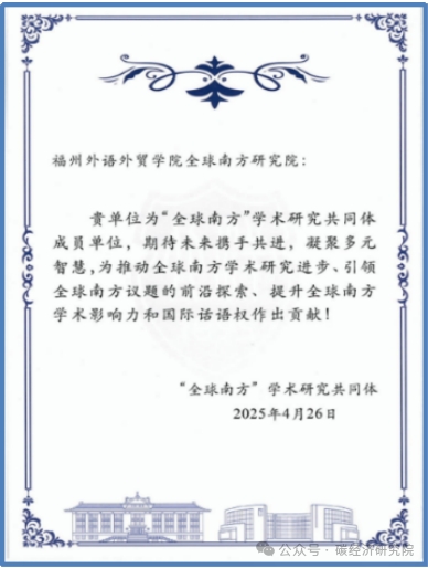“全球南方”学术研究共同体的成立,为全球南方研究开启了新的篇章。我校作为唯一一家民办高校参与其中,展现了我校在该领域的学术实力和影响力。碳经济研究院凭借其在碳经济领域的前沿研究与深厚积累,将从全球南方国家的碳排放现状、碳经济转型路径、绿色可持续发展模式等关键维度,为全球南方研究提供极具价值的视角与研究方法。未来,我院将继续深耕全球南方研究领域,秉持开放包容的理念,加强合作,推动全球南方研究不断深入,为构建人类命运共同体注入新的动力。