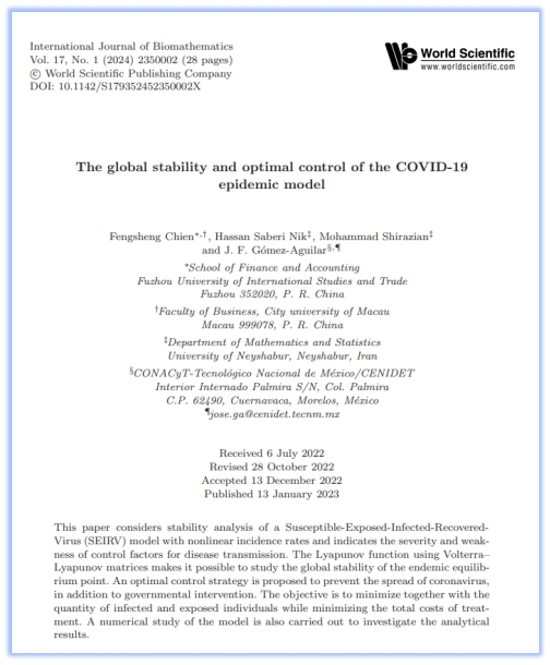 期刊:INTERNATIONAL JOURNAL OF BIOMATHEMATICS,国际生物数学杂志;中科院2区