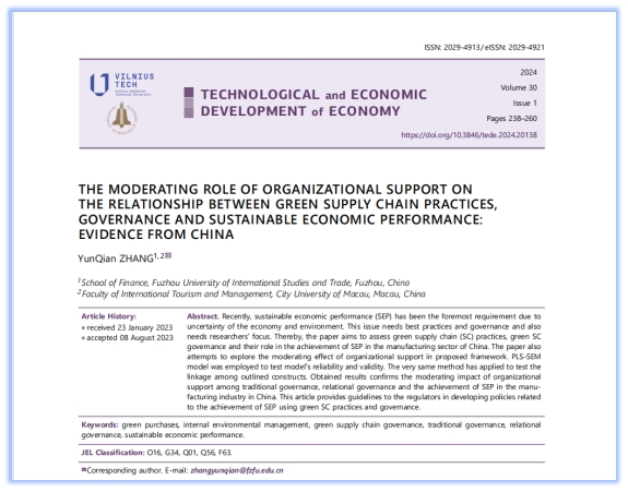 中文标题:组织支持在绿色供应链实践、治理与可持续经济绩效关系中的调节作用:来自中国的实质证据