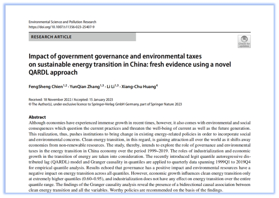 中文标题:政府治理与环境税对中国可持续能源转型的影响:基于新型QARDL方法的最新实证研究